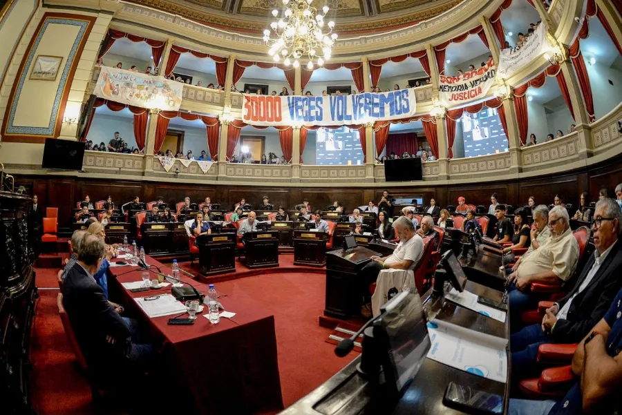 Durante la apertura de este encuentro, la vicegobernadora bonaerense, Verónica Magario, les habló a los jóvenes desde el recinto de sesiones de la Cámara Alta, y condenó fuertemente el terrorismo de Estado, al tiempo que reivindicó las banderas de Memoria, Verdad y Justicia.
