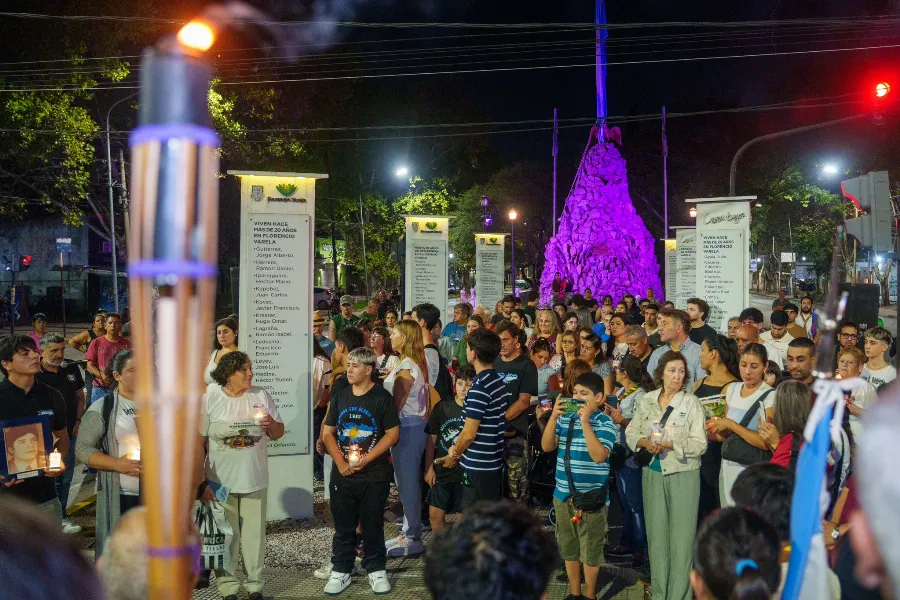 Desde el mencionado establecimiento, encolumnados detrás de una bandera celeste y blanca, los y las asistentes partieron en una marcha de antorchas hasta el espacio de memoria situado en la intersección de Av. San Martín con Castelli, donde entonaron el Himno argentino y realizaron un minuto de silencio.