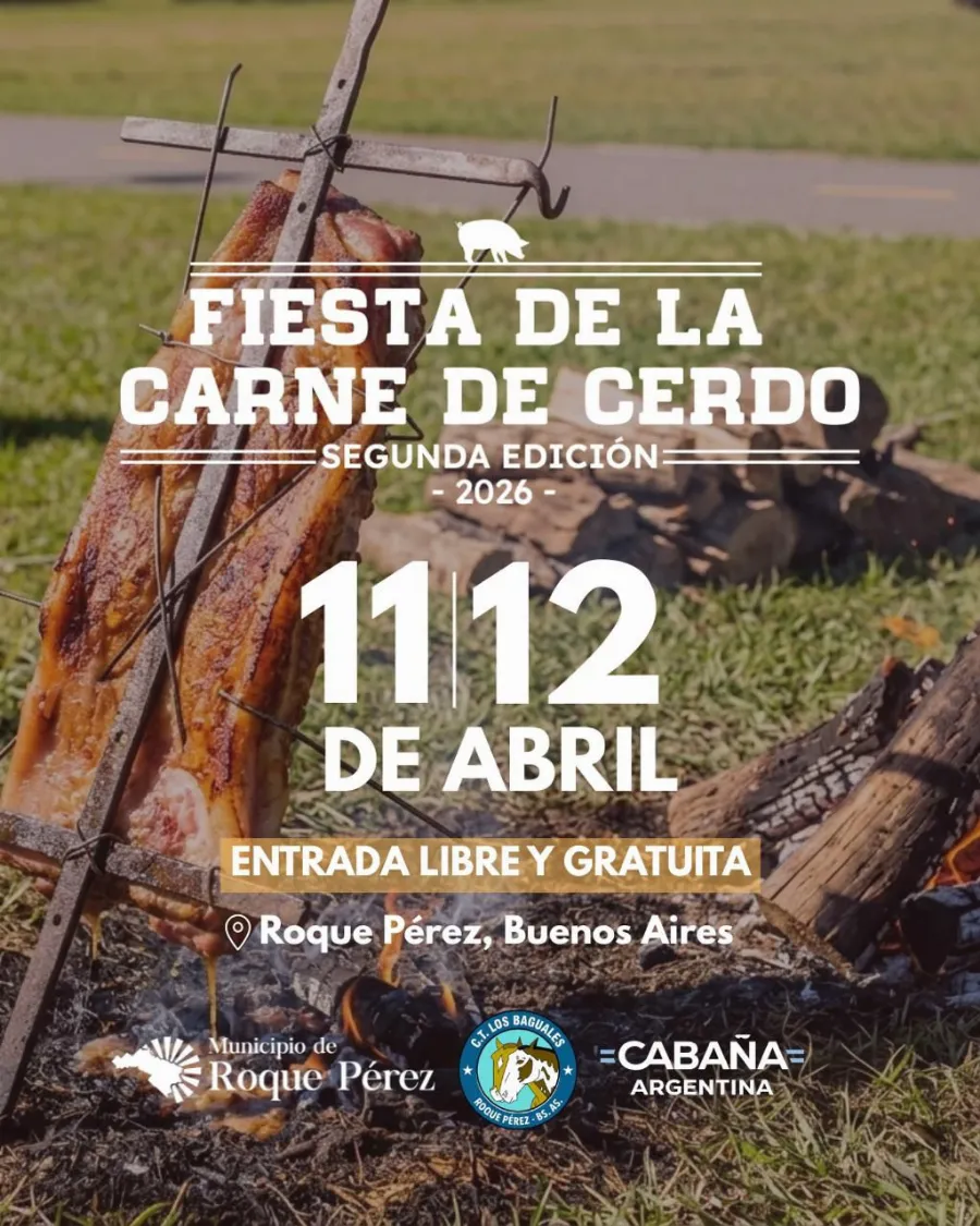 El municipio de Roque Pérez informa que los días 11 y 12 de abril se llevará a cabo la segunda edición de la Fiesta de la Carne de Cerdo, una propuesta que busca poner en valor la producción local y ofrecer a vecinos y visitantes un espacio de encuentro y disfrute.